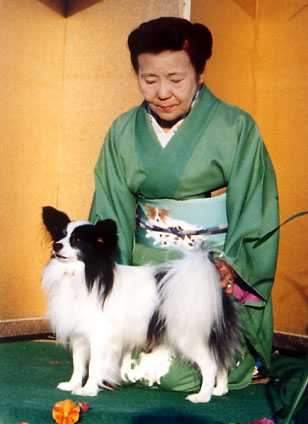 着物も帯もパピヨンが描かれています。 海外にはこの着物を着ていくことが多かったです。 犬 イギリスチャンピオン ユリシス |